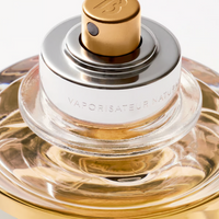 Utover selve duften speiles håndverkskvaliteten også i den nyutformede Absolu de Parfum-flasken. Den teksturerte korken er inspirert av Yakisugi – den japanske kunsten å forkulle tre – og symboliserer intensitet, transformasjon og varig styrke, i tråd med duftens karakter. Den sølv- og gullfargede forstøveren gir et industrielt preg som står i kontrast til flaskens myke kurver og rene linjer. Selve duftens dype farge skimtes gjennom glasset og gir en visuell forsmak på konsentrasjonen og dybden innvendig.