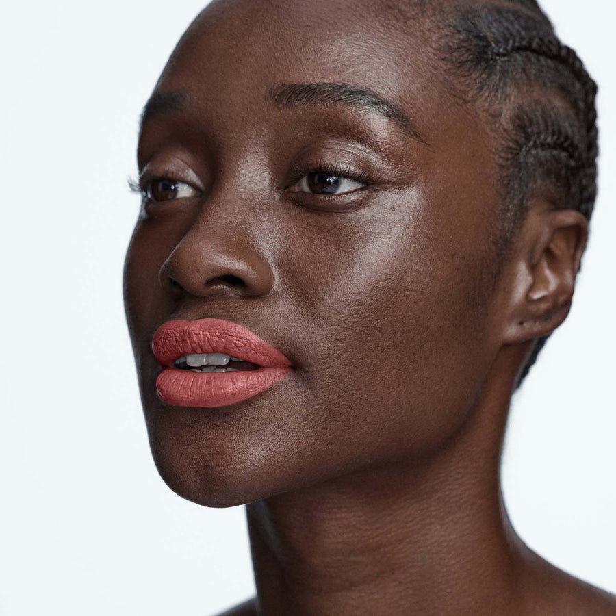 Den moderne matte teksturen kombinerer voks og lysreflekterende pigmenter for en kremaktig, men vektløs finish, som gir jevn farge og langvarig holdbarhet. Med en vegansk formel, beriket med roseblomst-ekstrakt, gir Matte Lipstick optimal pleie, med en følelse av fuktighet og komfort..