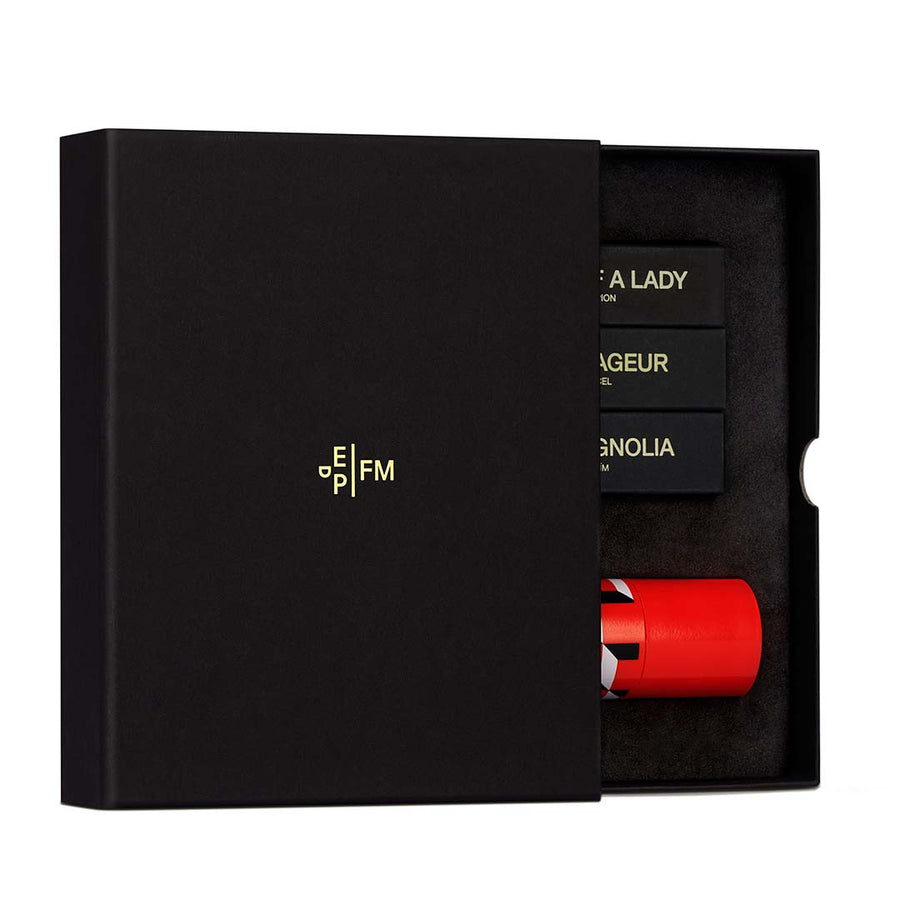 Et reisesett med tre av Frédéric Malles mest ikoniske dufter i 10 ml-størrelse. Dette settet inkluderer duftene Portrait of a Lady, Musc Ravageur og Eau de Magnolia. Reiseetuiet er i et minimalistisk limited edition design av Pierre Hardy.